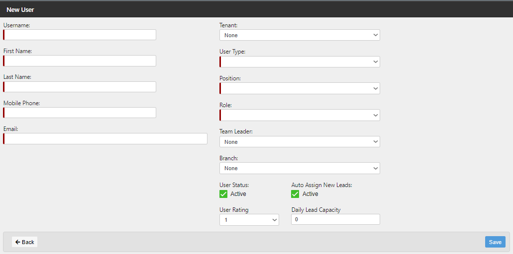 - Auto Assign New Leads, User Rating, Daily Lead Capacity