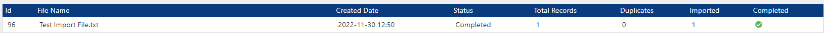 Once all the fields have been mapped as shown in the above image, you will see a green Import icon become available. Click this icon to import the leads. Once clicked you will be navigated to the import screen that will display the file name, status of the import as well the total records on the file.