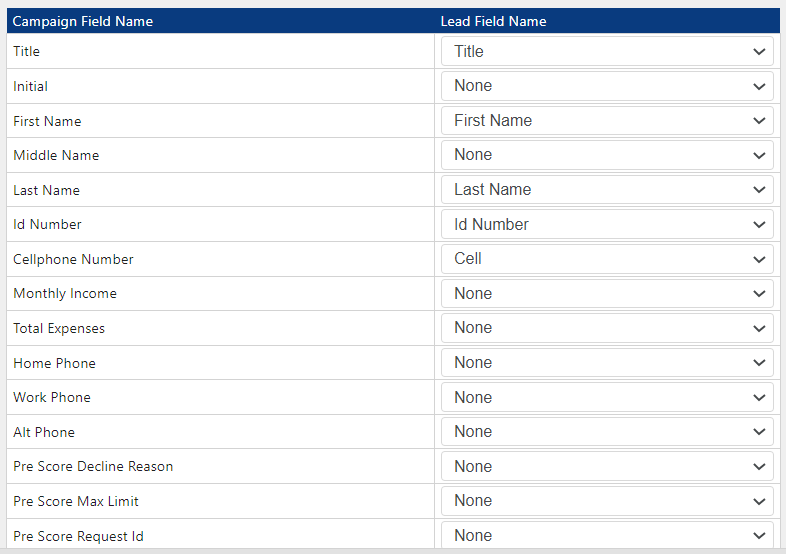 Laminin will attempt to map data from the file to their respective fields in Laminin using the column headers from the file. Where Laminin cannot map a field you will need to open the drop down list and select the option of ‘None’ for fields that you cannot match as indicated in the below image: